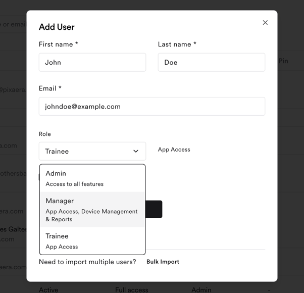 You can add users to the Pixaera platform in two ways: individually or in bulk.