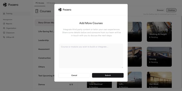 - This opens a request form to notify the Pixaera team of the content you'd like to create or tailor.