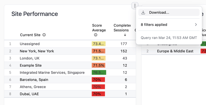 - Click the three dots to download the report as a CSV or Excel file.