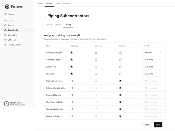 Contractors shouldn’t be an afterthought. With Pixaera, you can create dedicated groups, assign access, and track their training history just like internal staff. No more emailing spreadsheets or managing records separately — now all training data lives in one system.