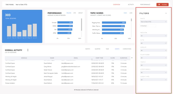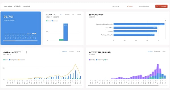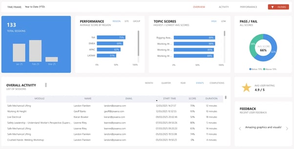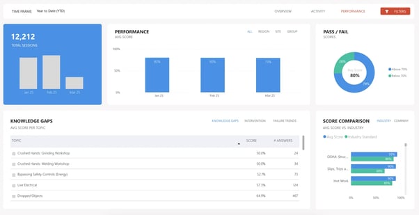 This page is designed to help you uncover your team readiness. Are they passing key safety modules on the first attempt, or do they need help with a specific area? It dives deep into the numbers, giving you insights on the following trends: