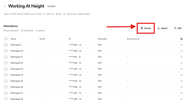 Each session includes a built-in survey that matches the language of the training. Once the session ends, as long as you have submitted attendance for your classroom session you can launch the survey directly from the dashboard.