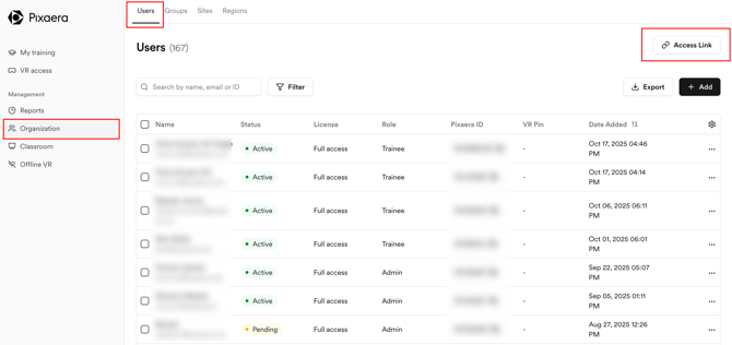 Training access links make it easy for admins to invite workers — both internal teams and contractors — to self-enroll in Pixaera training.