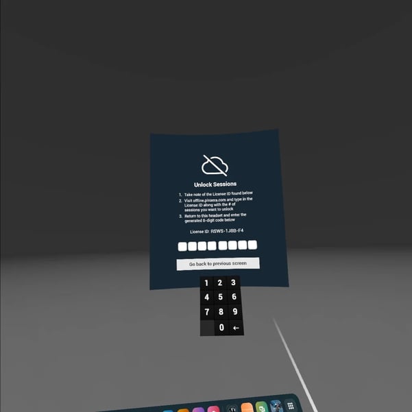 - Activate in the App: Return to the VR app and enter the 8-digit pin when prompted. This will unlock the requested number of sessions on that device.